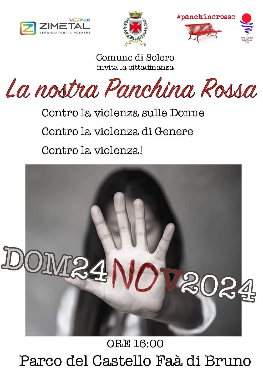 Domenica 24 novembre alle ore 16,00 nel parco del Castello Faà di Bruno verrà inaugurata la nostra "Panchina Rossa" simbolo contro la violenza sulle Donne.