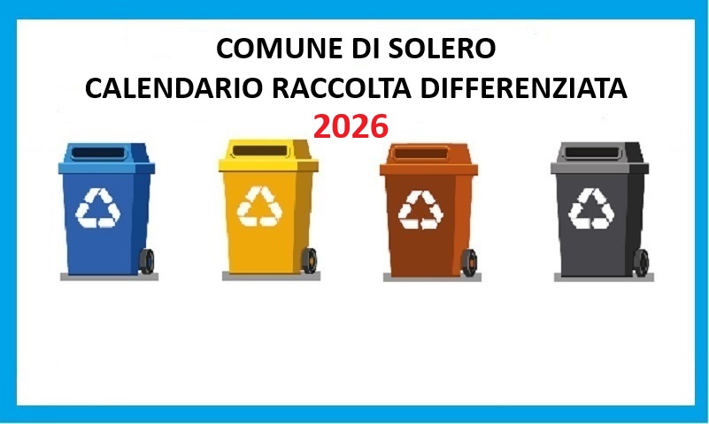 Si informano i cittadini del Comune di Solero che è disponibile il nuovo calendario della raccolta differenziata per l'anno 2026.