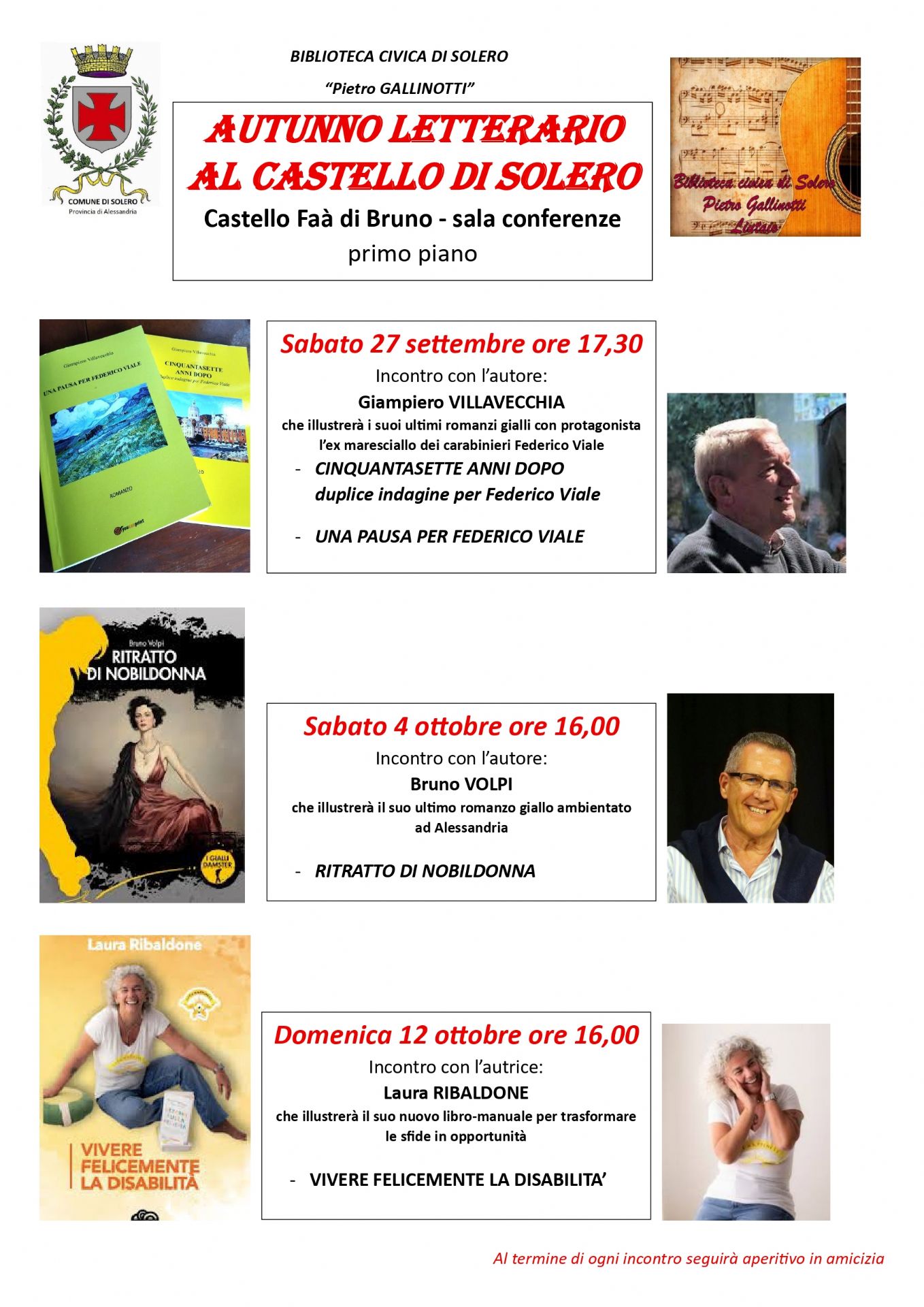 La Biblioteca Civica di Solero organizza una serie di incontri con alcuni autori che illustreranno le loro ultime opere e i personaggi.