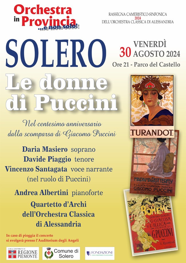 Nel centesimo anniversario della scomparsa del compositore Giacomo Puccini, il Comune di Solero con l'Orchestra Classica di Alessandria organizza presso il parco del Castello Faà di Bruno un concerto dedicato ai personaggi femminili delle sue opere.