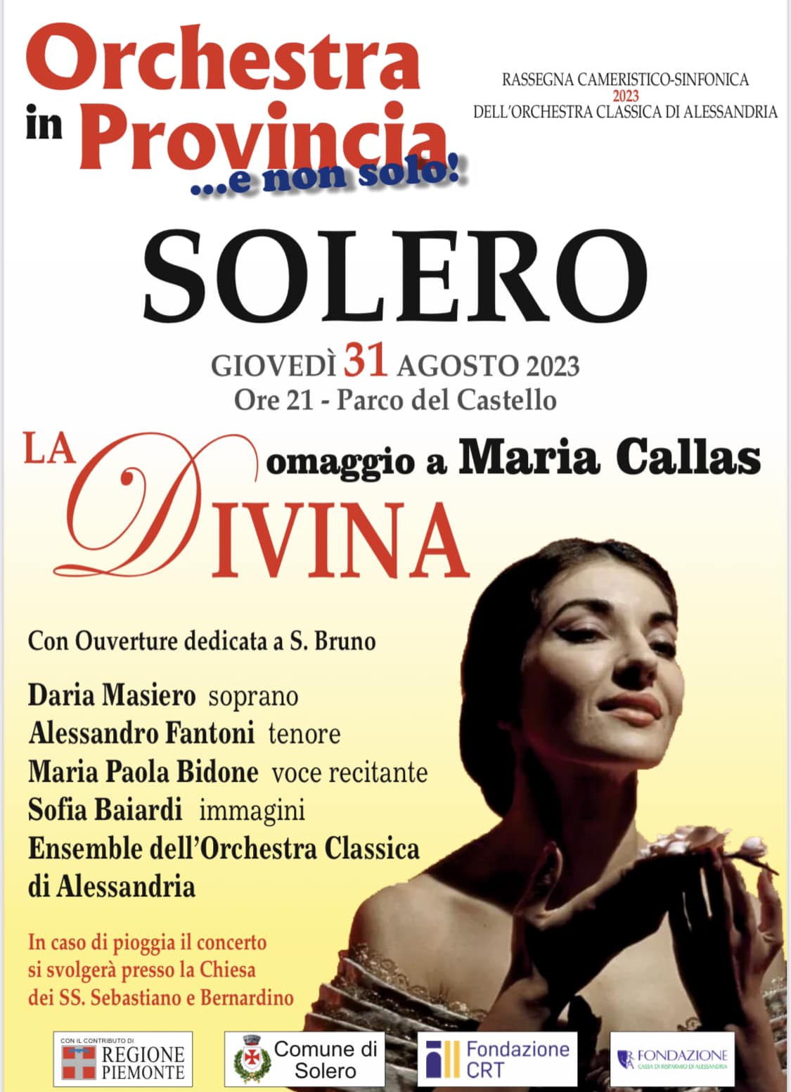Nella piacevole cornice del parco del castello di Solero, il comune di Solero organizza un concerto dell'Orchestra Classica di Alessandria in omaggio alla soprano Maria Callas
