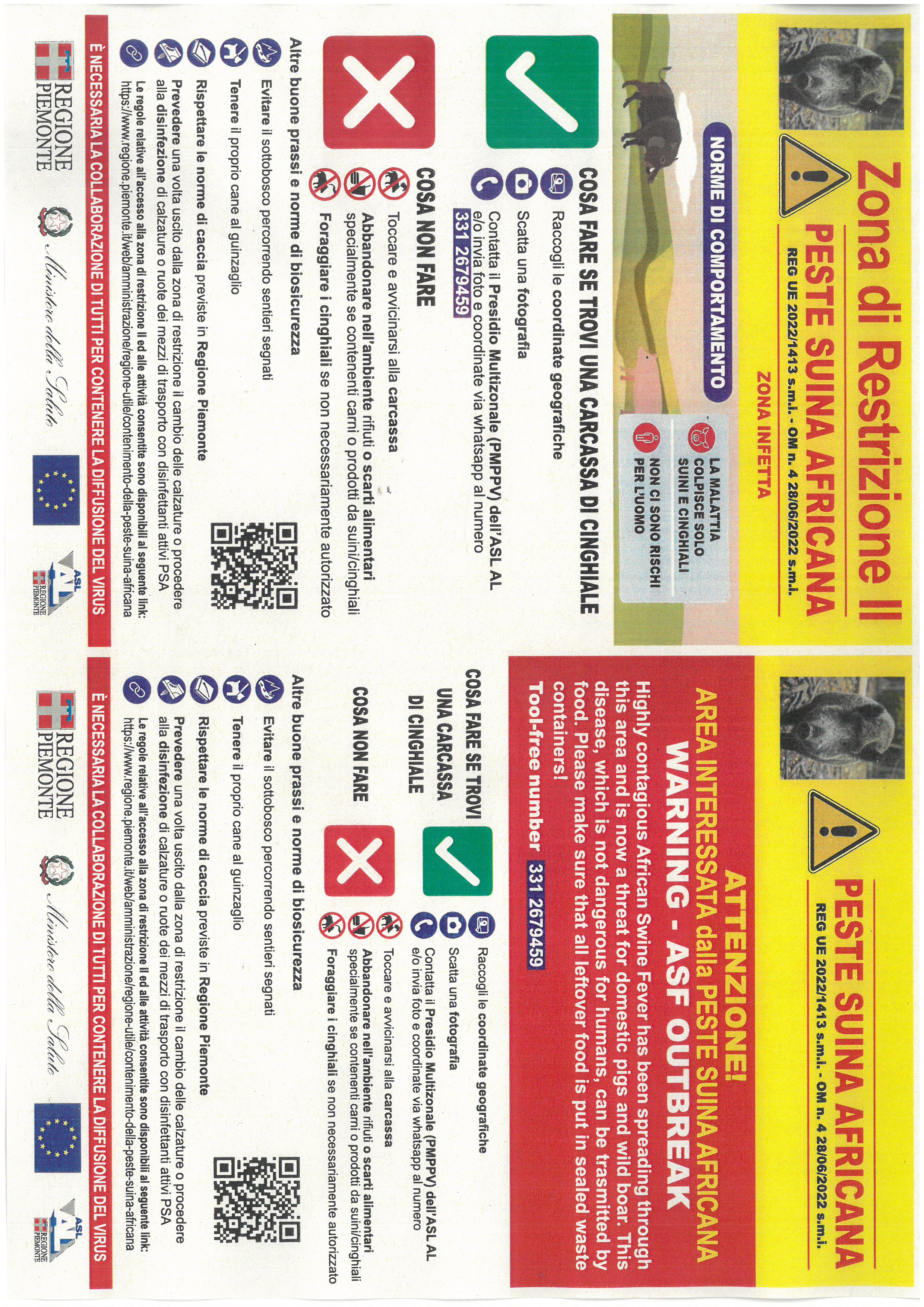 Il servizio di Sanità Animale dell'ASL AL con nota pervenuta in data 6 marzo 2023 ha comunicato che a seguito dell'evoluzione sfavorevole dell'infezione da Peste Suina Africana nei cinghiali, è stato adottato il Regolamento di Esecuzione (UE) del 23.02.2024 che stabilisce misure speciali di controllo e aggiornando l'elenco dei comuni soggetti a restrizione.