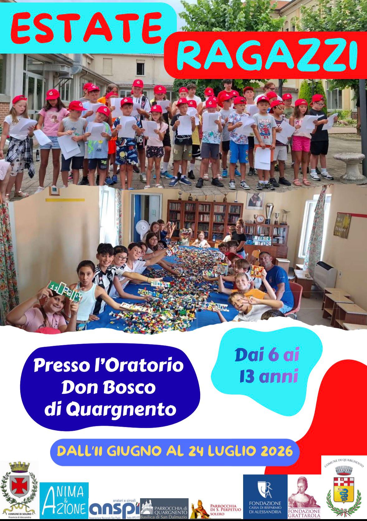 Dall'11 giugno al 24 luglio 2026 si svolgeranno, per bambini e ragazzi dai 6 ai 13 anni, presso l'oratorio Don Bosco di Quargnento.