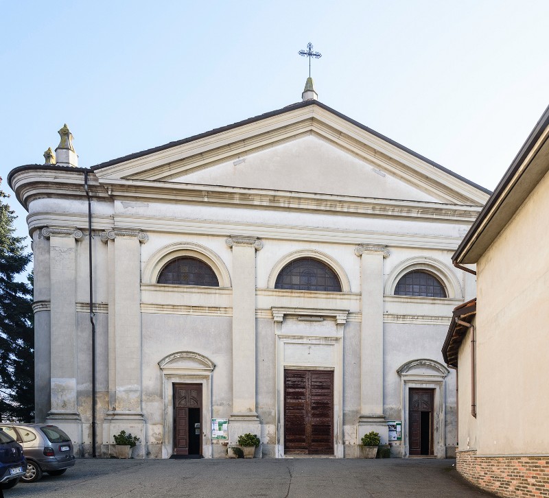 La facciata principale è prospiciente uno stretto piazzale di accesso a pianta rettangolare e gli elementi architettonici del prospetto presentano caratteri neoclassici dovuti probabilmente alla ripresa di motivi già esistenti, in quanto negli anni '50 furono rifatti gli esterni della chiesa.